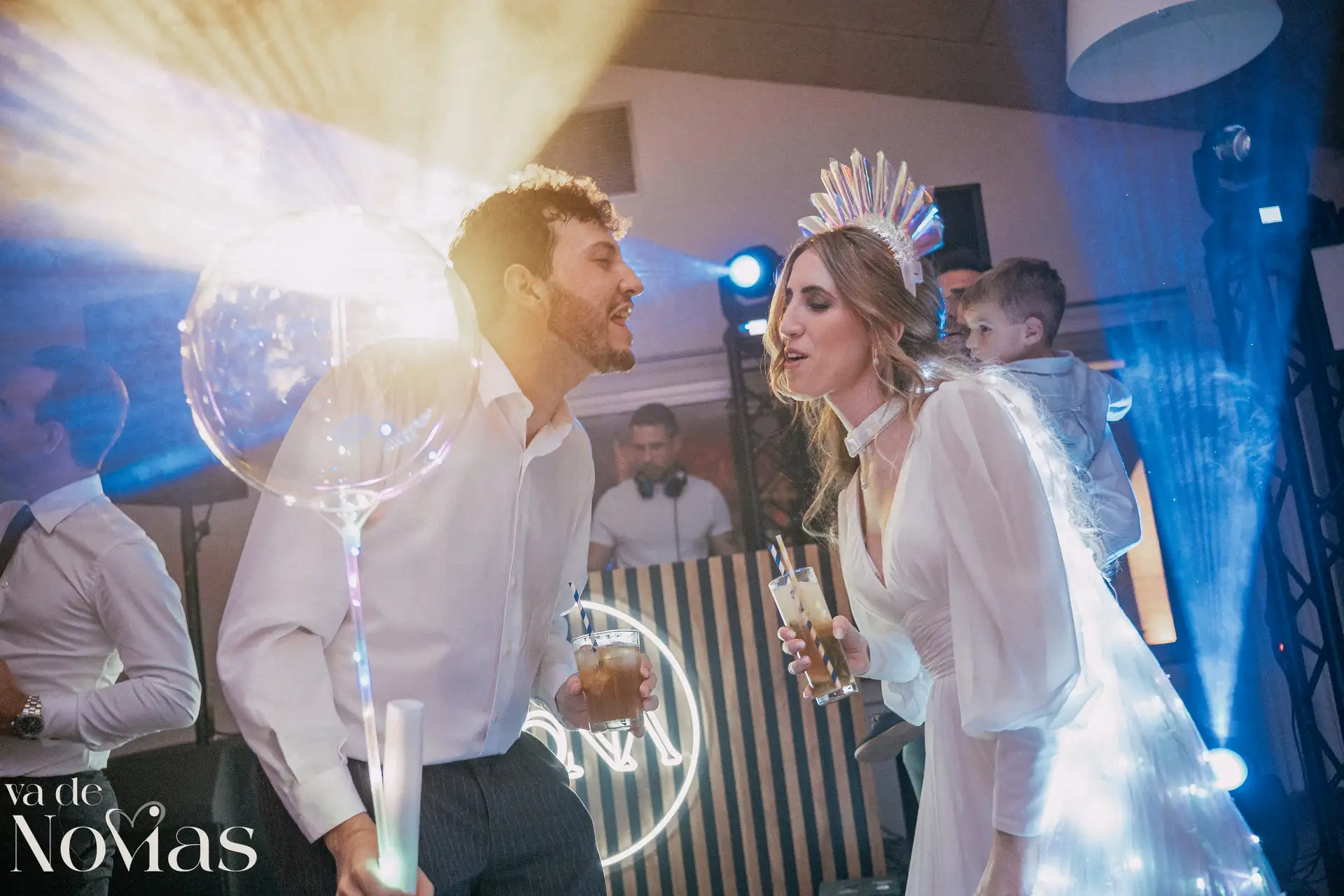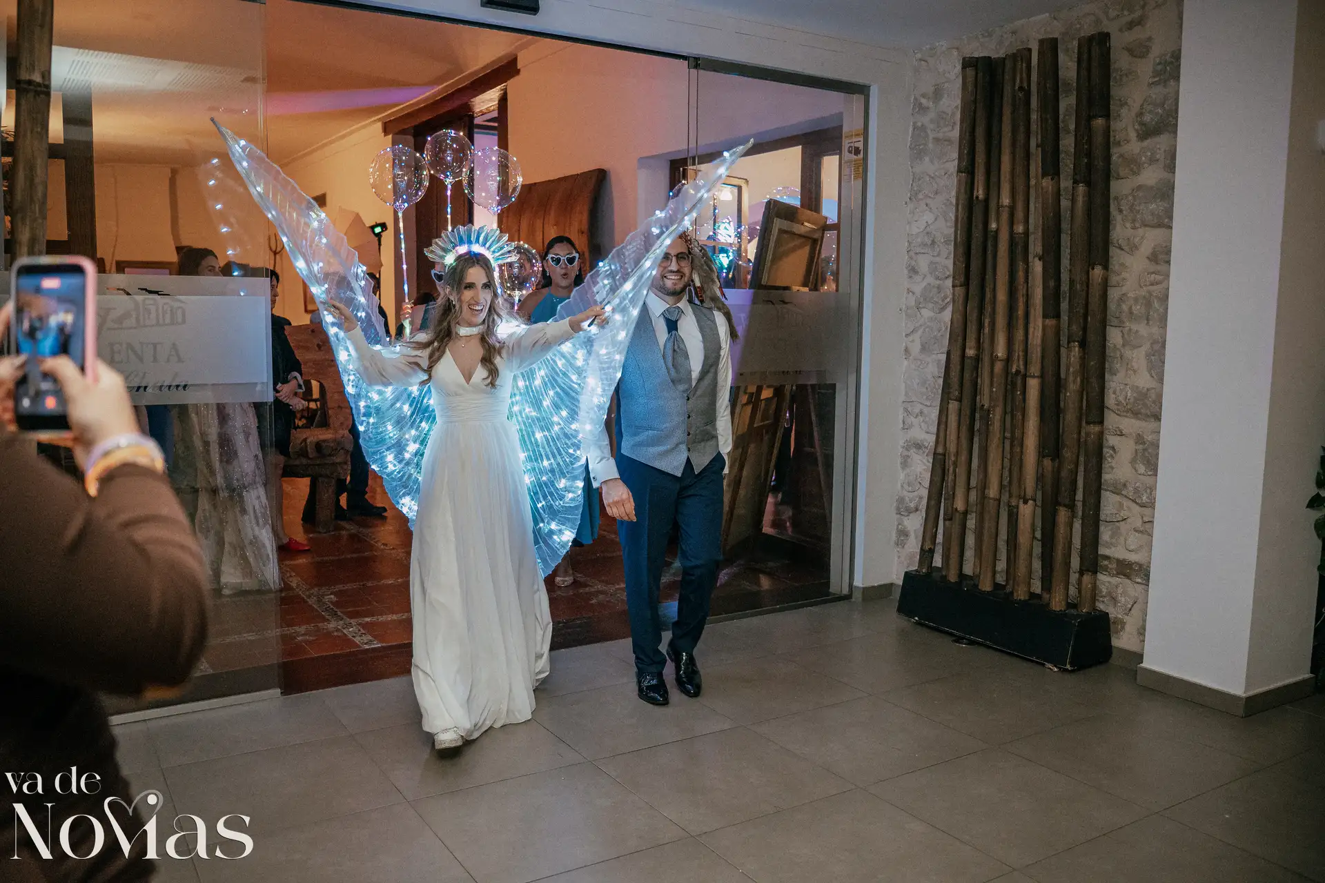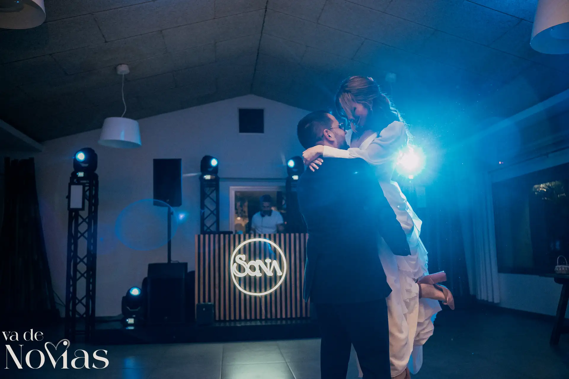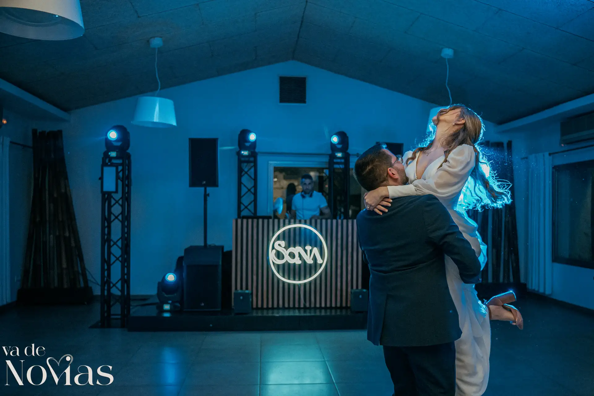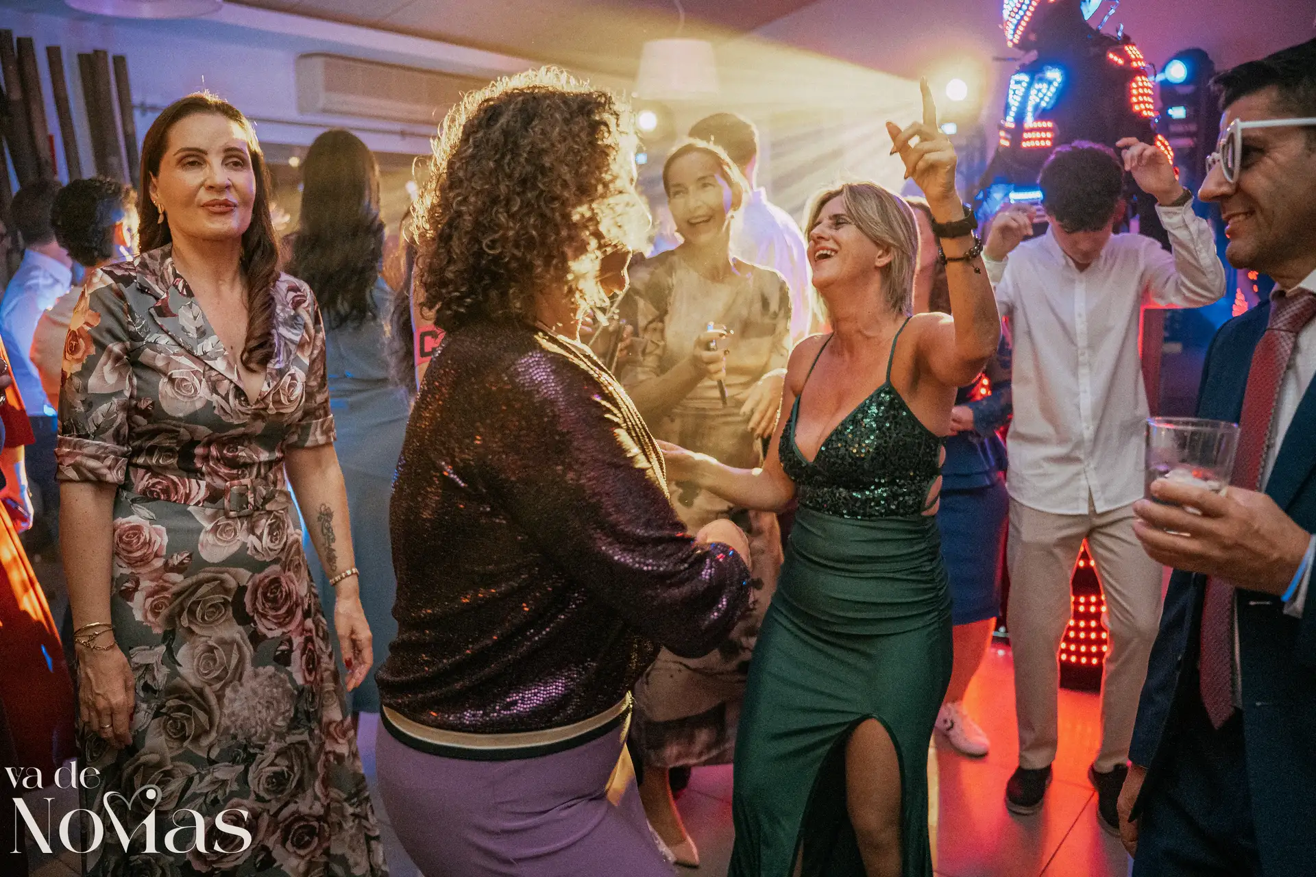 La noche fue para inaugurarlo por todo lo alto. Sandra y Carlos no querían una fiesta cualquiera; querían un "gran fiestón", y vaya si lo consiguieron. Bajo la luz vibrante y preciosa de la discomóvil de Sona, la noche ya prometía, pero entonces llegó el momento de la hora feliz. Los amigos, junto a los propios novios, desaparecieron un instante para volver disfrazados y de repente, irrumpió en la pista un titán de casi tres metros: un robot espectacular que se convirtió en el epicentro de la "Hora Loca". El artista detrás del robot trabajó sin descanso, con una entrega admirable para que la experiencia fuera inolvidable, generando fotografías y momentos épicos que quedarán para siempre como el reflejo de una celebración memorable, divertida y maravillosamente loca.