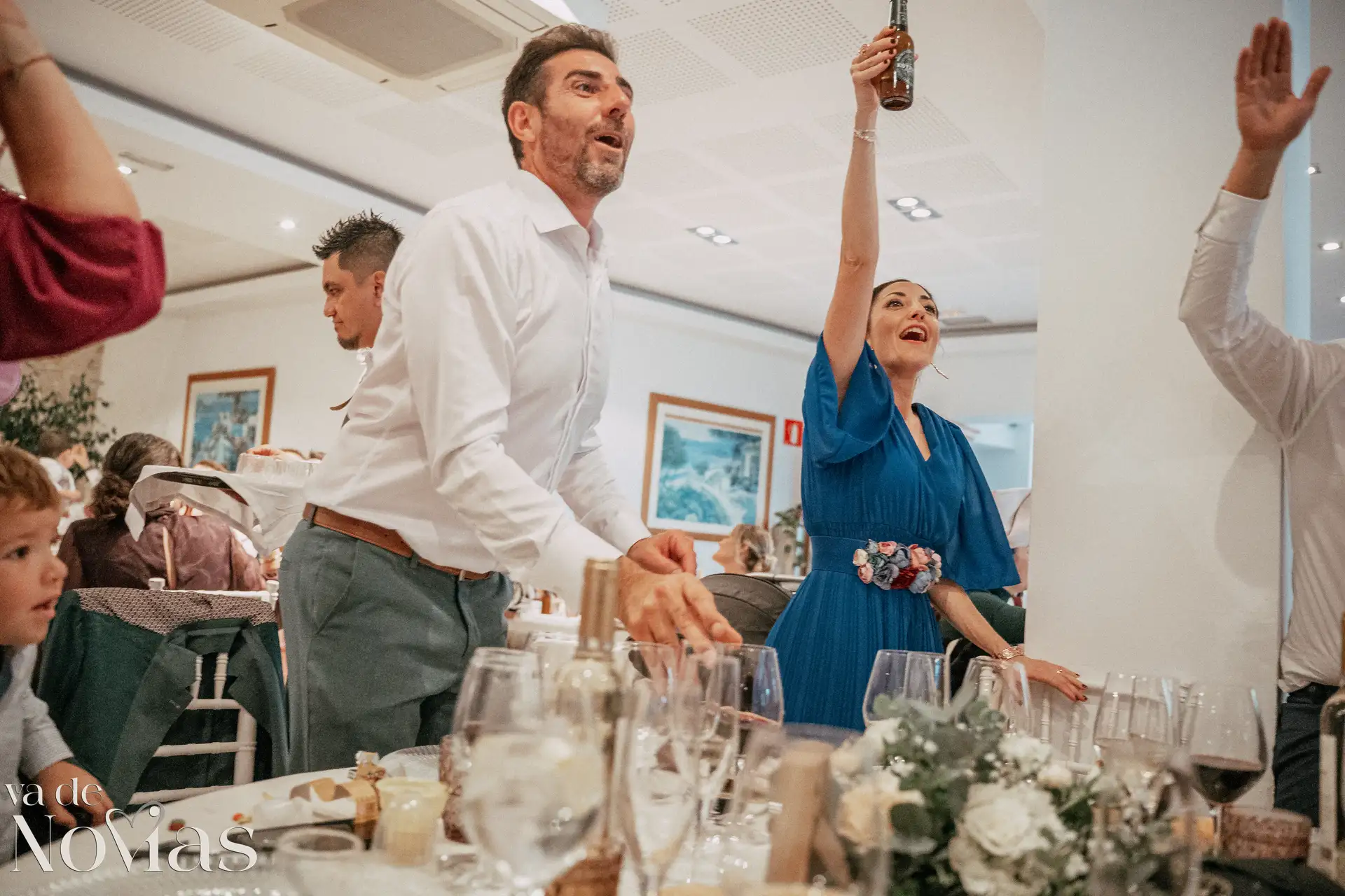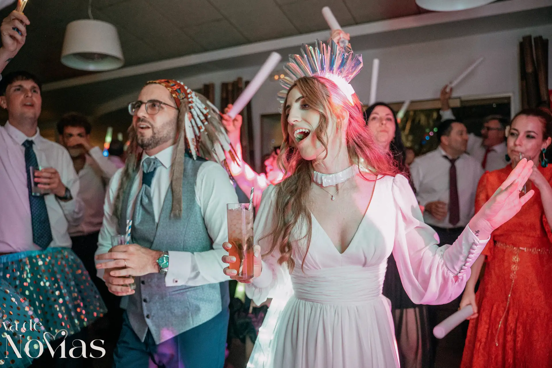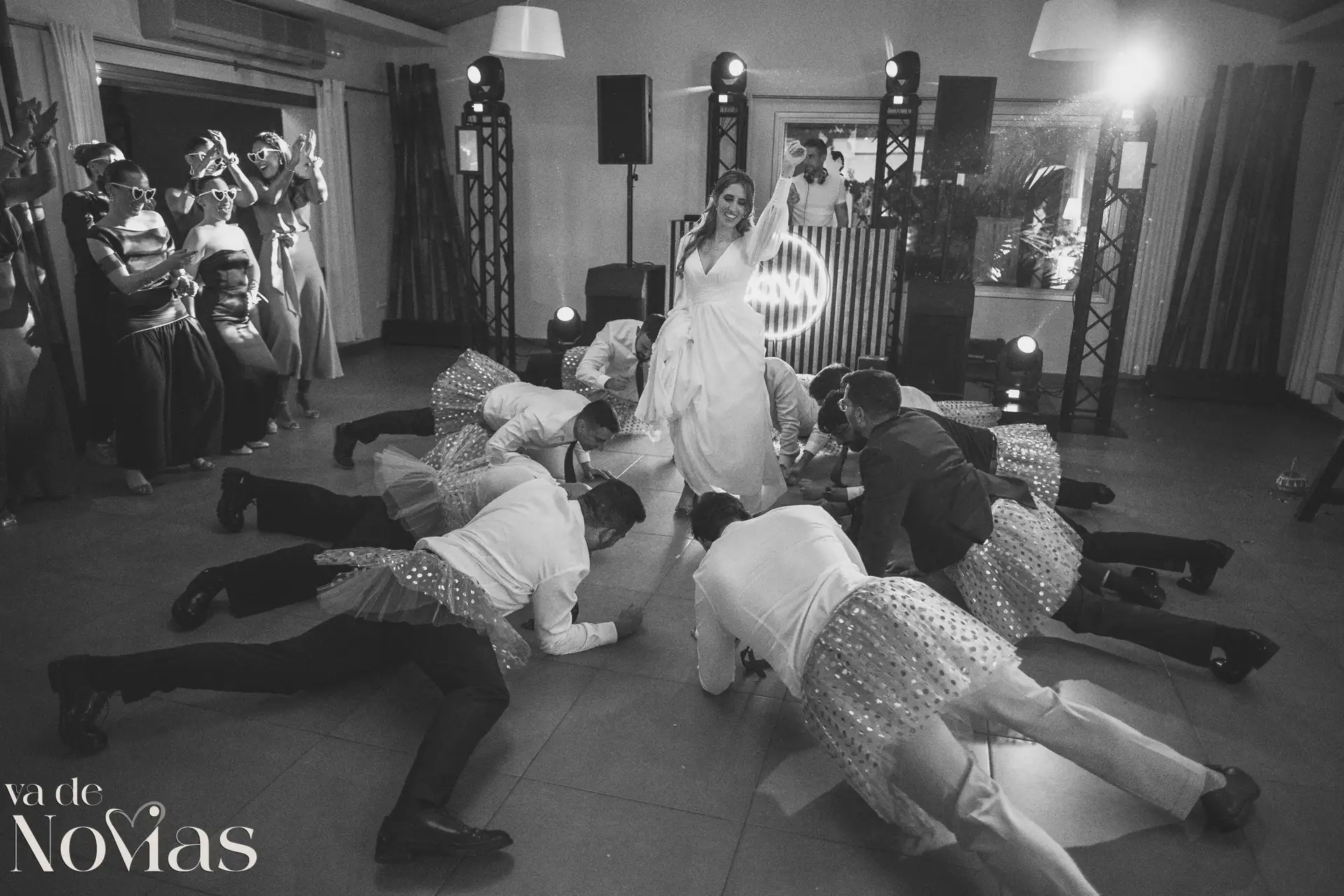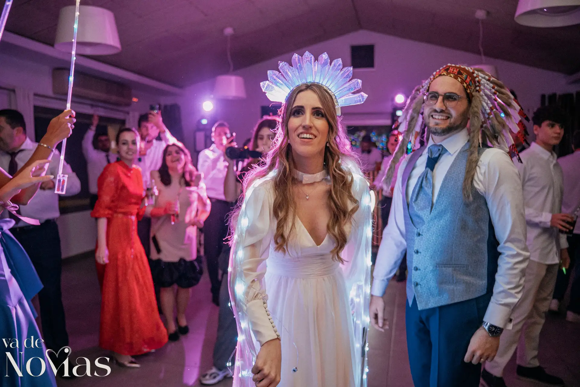 La noche fue para inaugurarlo por todo lo alto. Sandra y Carlos no querían una fiesta cualquiera; querían un "gran fiestón", y vaya si lo consiguieron. Bajo la luz vibrante y preciosa de la discomóvil de Sona, la noche ya prometía, pero entonces llegó el momento de la hora feliz. Los amigos, junto a los propios novios, desaparecieron un instante para volver disfrazados y de repente, irrumpió en la pista un titán de casi tres metros: un robot espectacular que se convirtió en el epicentro de la "Hora Loca". El artista detrás del robot trabajó sin descanso, con una entrega admirable para que la experiencia fuera inolvidable, generando fotografías y momentos épicos que quedarán para siempre como el reflejo de una celebración memorable, divertida y maravillosamente loca.