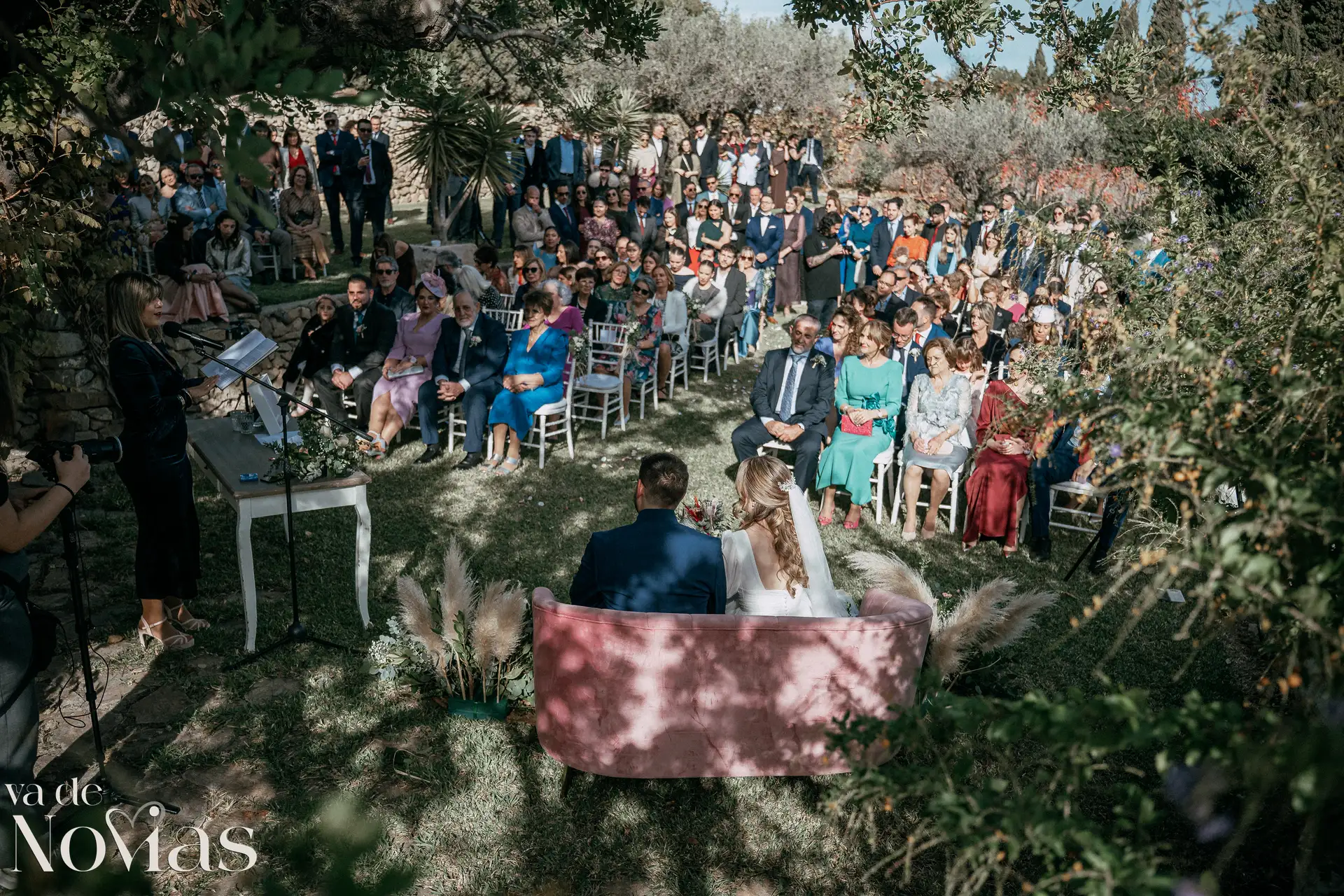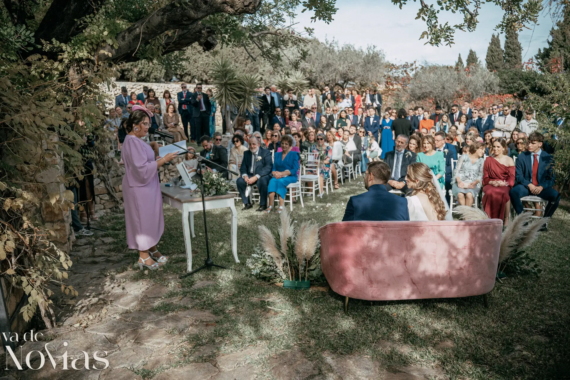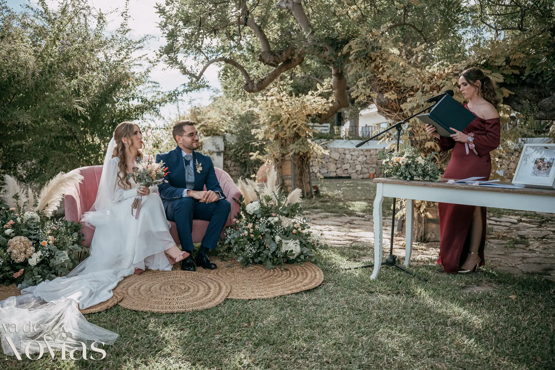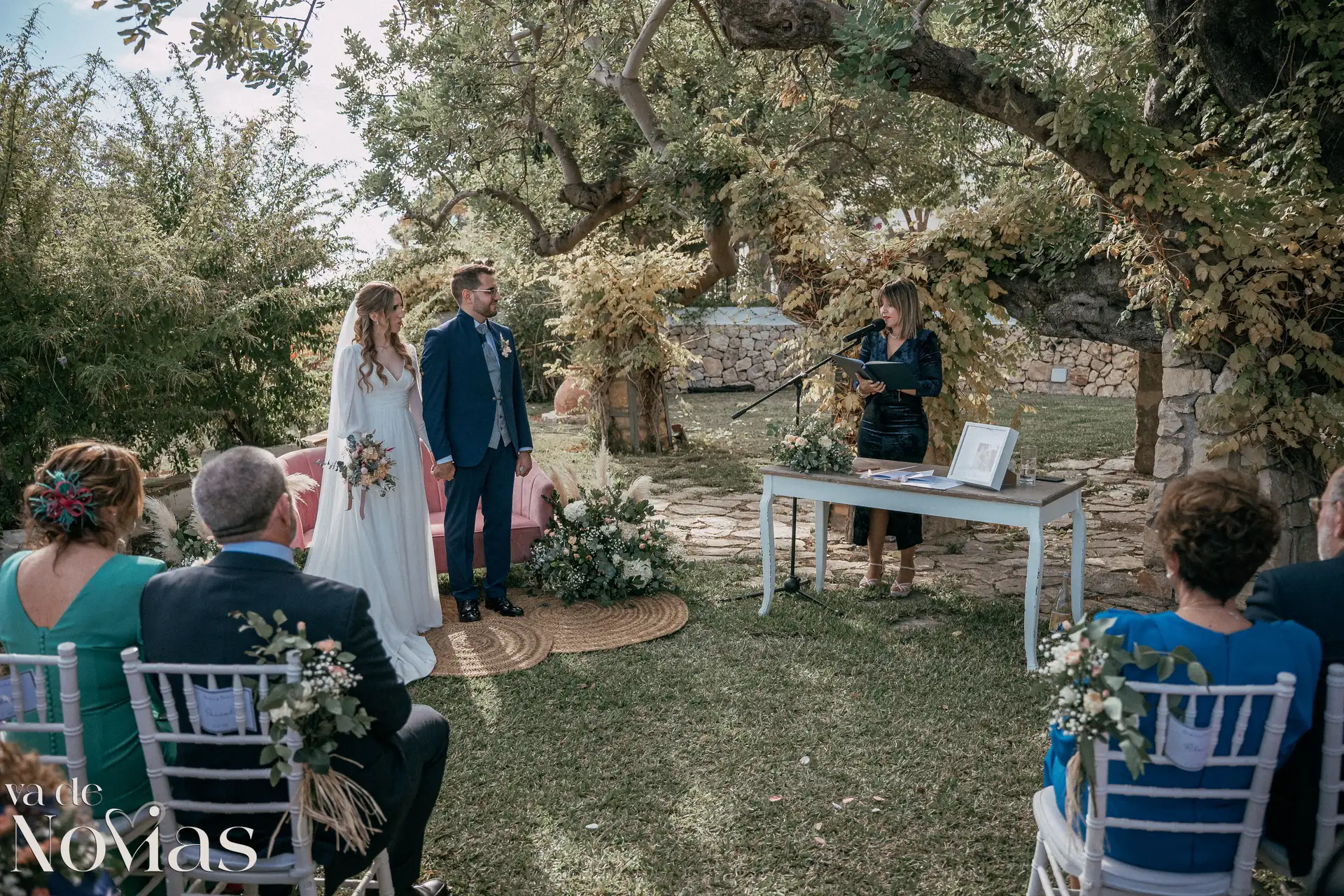 Encaramada en la carretera que une Altea y Calpe, con el murmullo del mar de fondo, Venta La Chata se convirtió en el escenario perfecto para un "sí, quiero" lleno de luz. A la una del mediodía del 15 de noviembre, un sol suave de otoño bañaba el acogedor jardín a doble altura, creando una atmósfera íntima y cálida que nos abrazó a todos. La ceremonia, oficiada con una calidez especial por Carmen Ales, no fue un simple trámite, sino un tapiz tejido con las voces de los amigos y familiares que mejor conocen a Sandra y a Carlos. Y qué curioso que un 15 de noviembre, hace siglos, se fundara una ciudad llamada Santa Fe. Porque lo que Sandra y Carlos hicieron ese día, rodeados de esas palabras que son hogar, fue precisamente eso: fundar su propio territorio, un lugar basado en la fe mutua, en la complicidad y en un amor que, como vimos, se celebra sin necesidad de artificios.