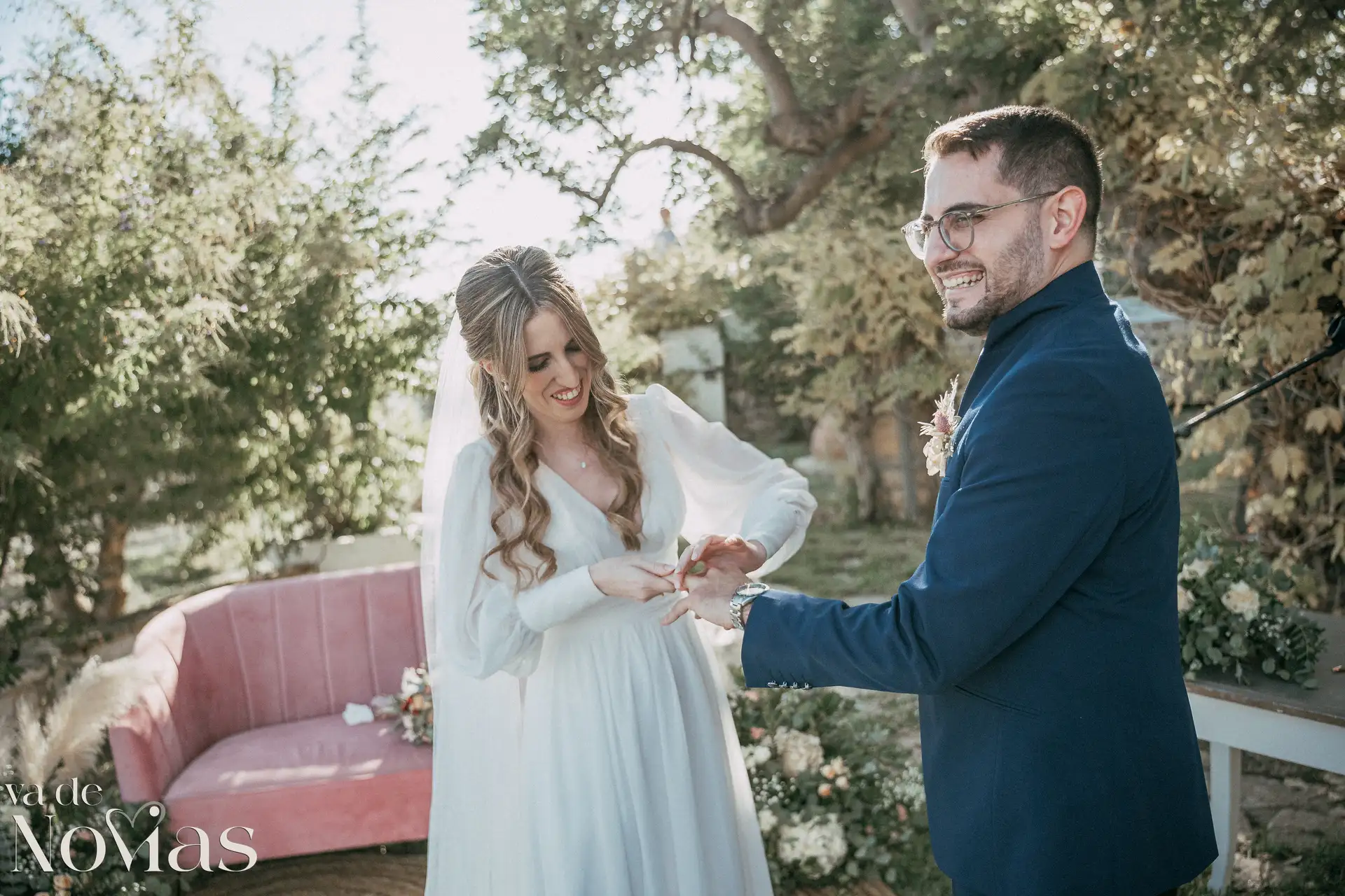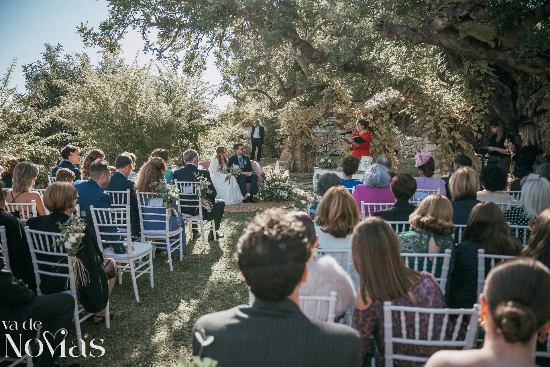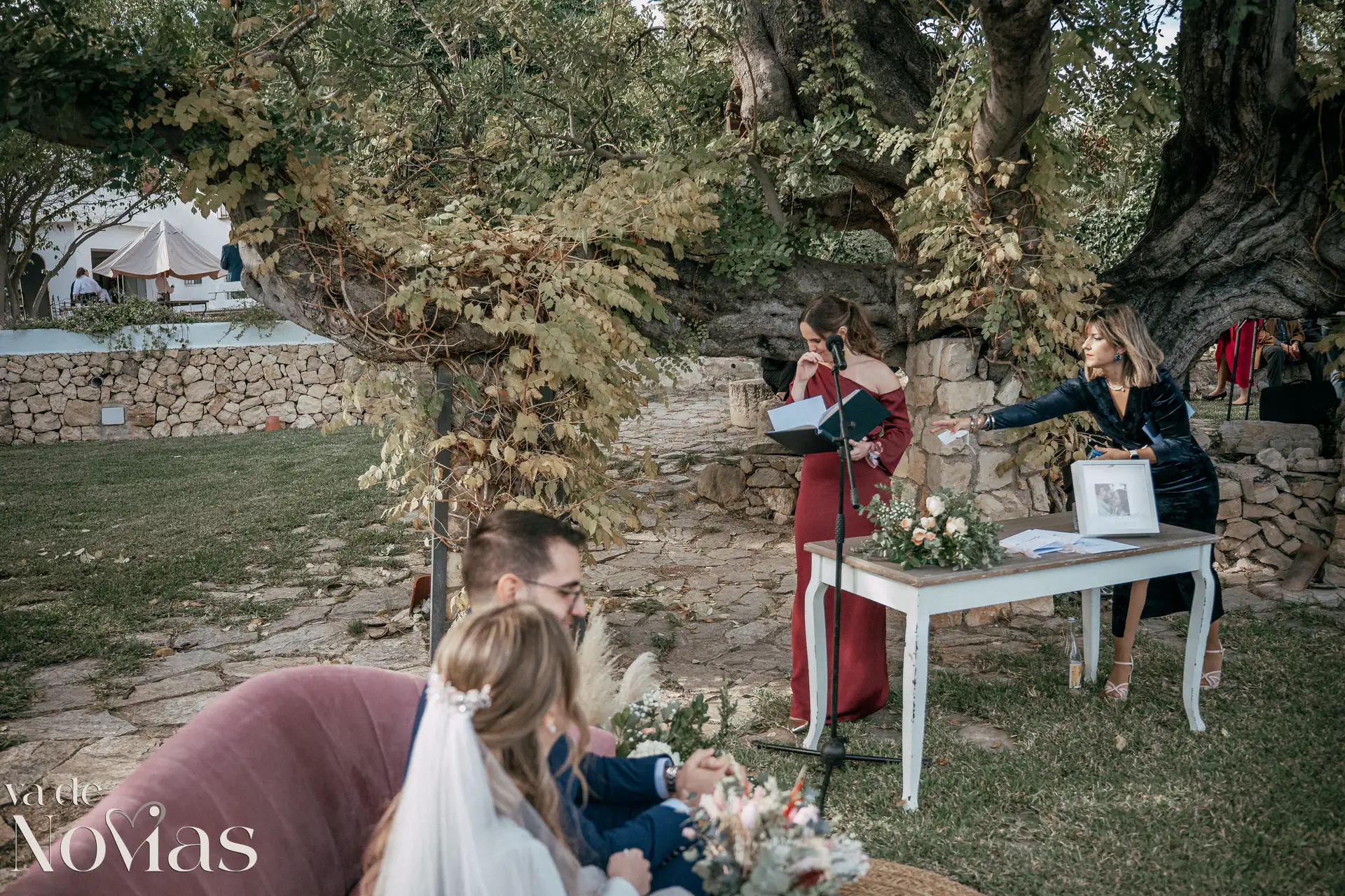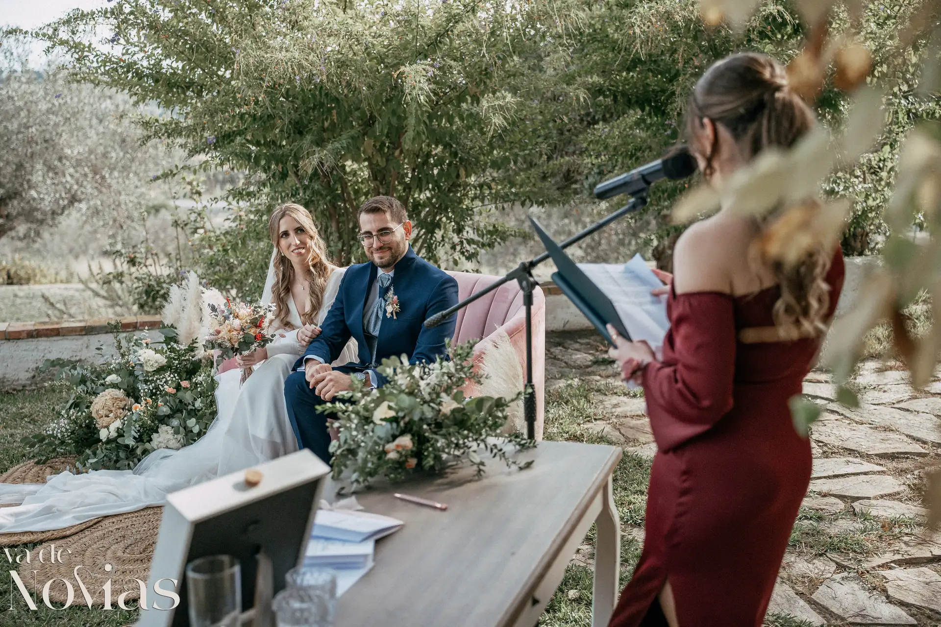 Encaramada en la carretera que une Altea y Calpe, con el murmullo del mar de fondo, Venta La Chata se convirtió en el escenario perfecto para un "sí, quiero" lleno de luz. A la una del mediodía del 15 de noviembre, un sol suave de otoño bañaba el acogedor jardín a doble altura, creando una atmósfera íntima y cálida que nos abrazó a todos. La ceremonia, oficiada con una calidez especial por Carmen Ales, no fue un simple trámite, sino un tapiz tejido con las voces de los amigos y familiares que mejor conocen a Sandra y a Carlos. Y qué curioso que un 15 de noviembre, hace siglos, se fundara una ciudad llamada Santa Fe. Porque lo que Sandra y Carlos hicieron ese día, rodeados de esas palabras que son hogar, fue precisamente eso: fundar su propio territorio, un lugar basado en la fe mutua, en la complicidad y en un amor que, como vimos, se celebra sin necesidad de artificios.