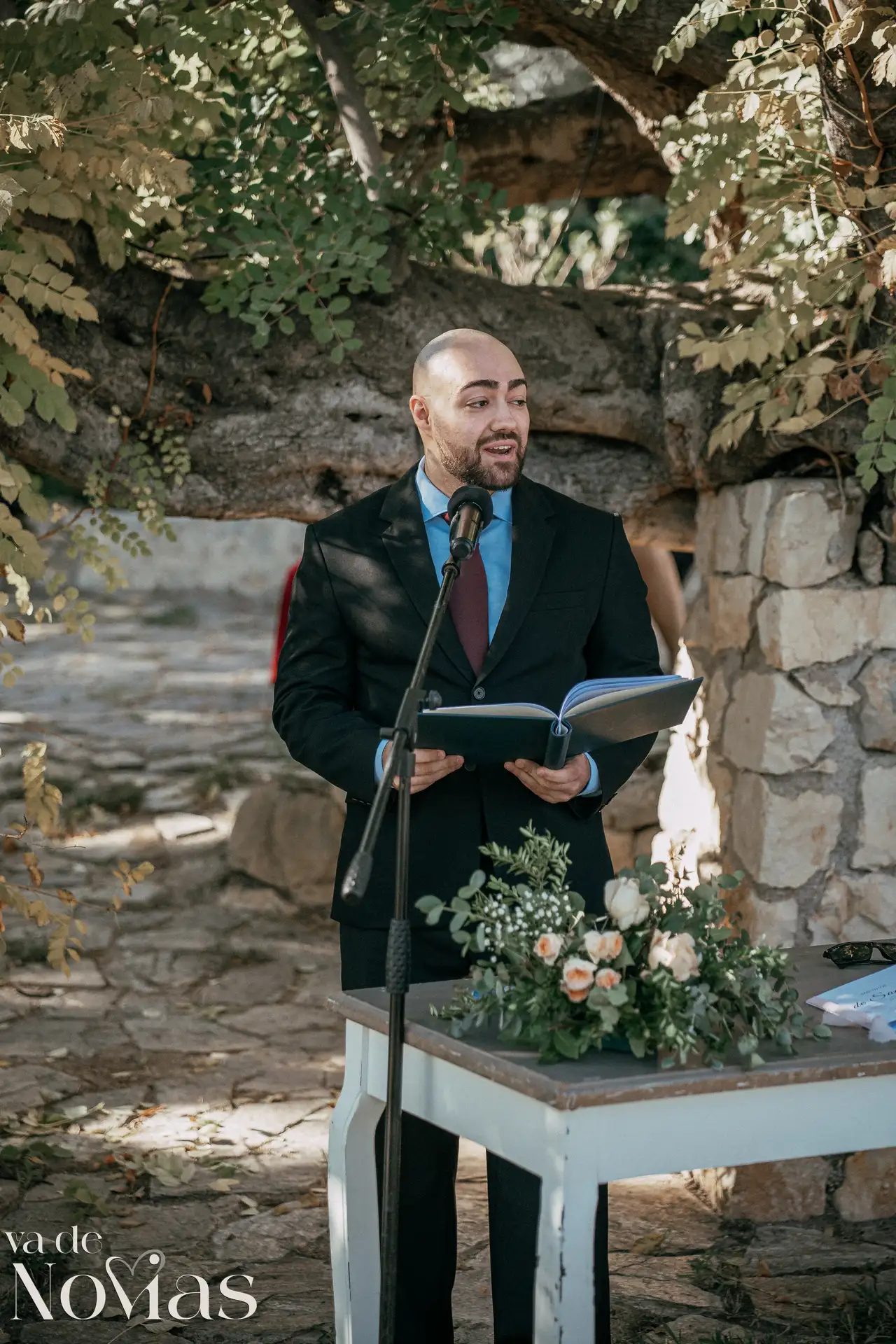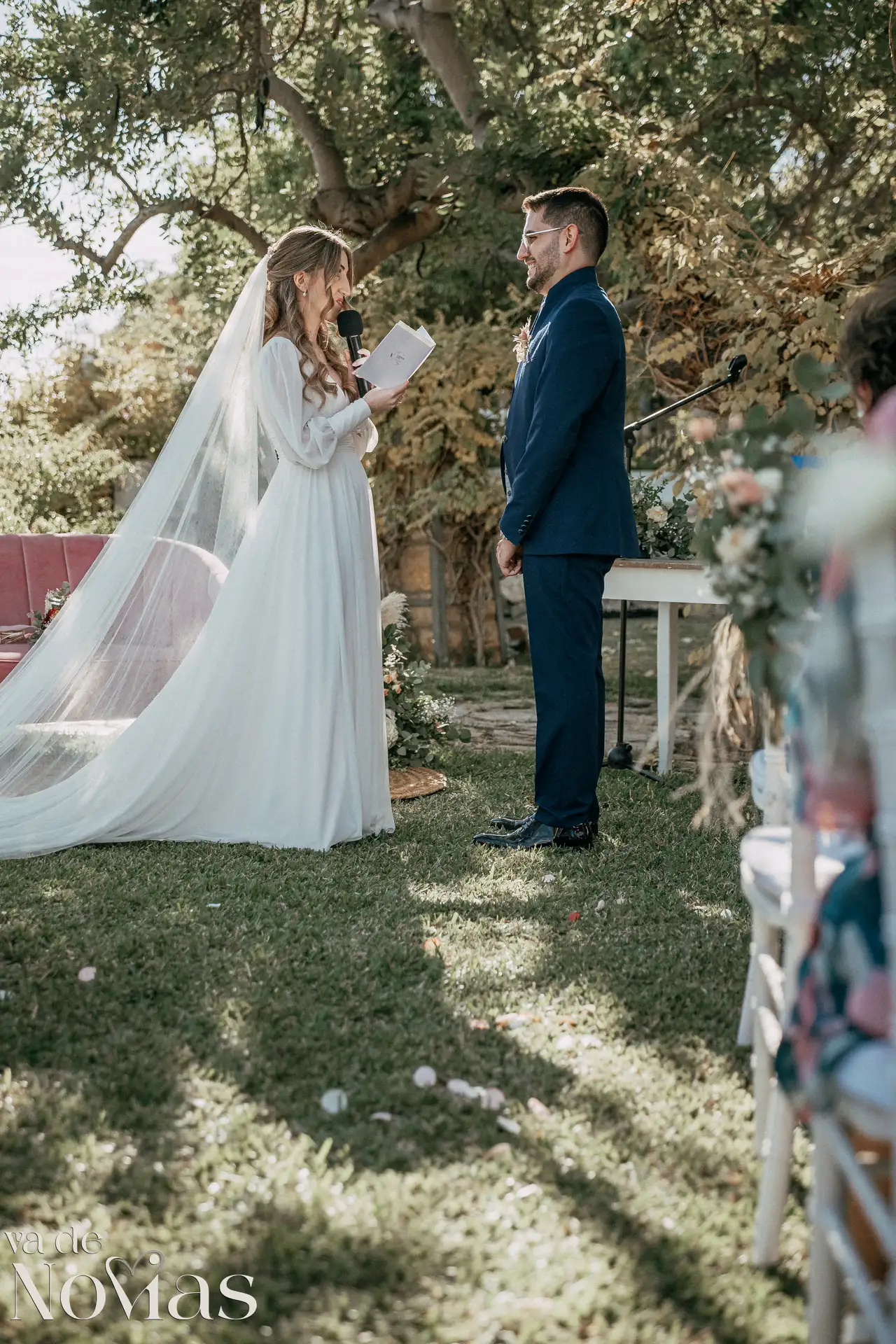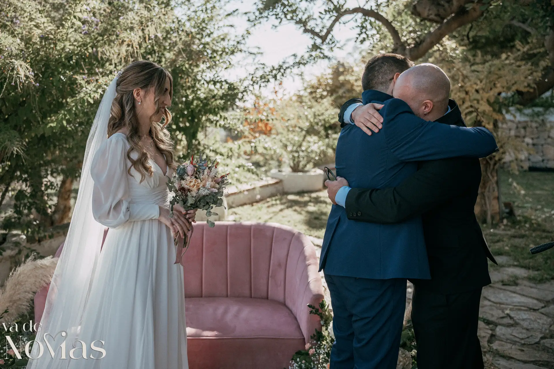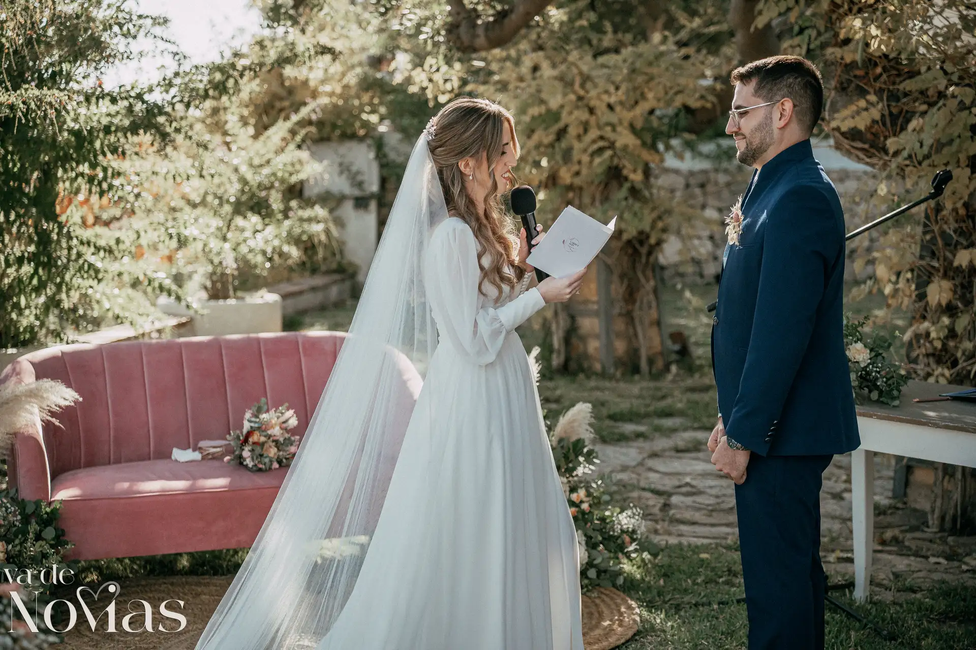 Encaramada en la carretera que une Altea y Calpe, con el murmullo del mar de fondo, Venta La Chata se convirtió en el escenario perfecto para un "sí, quiero" lleno de luz. A la una del mediodía del 15 de noviembre, un sol suave de otoño bañaba el acogedor jardín a doble altura, creando una atmósfera íntima y cálida que nos abrazó a todos. La ceremonia, oficiada con una calidez especial por Carmen Ales, no fue un simple trámite, sino un tapiz tejido con las voces de los amigos y familiares que mejor conocen a Sandra y a Carlos. Y qué curioso que un 15 de noviembre, hace siglos, se fundara una ciudad llamada Santa Fe. Porque lo que Sandra y Carlos hicieron ese día, rodeados de esas palabras que son hogar, fue precisamente eso: fundar su propio territorio, un lugar basado en la fe mutua, en la complicidad y en un amor que, como vimos, se celebra sin necesidad de artificios.