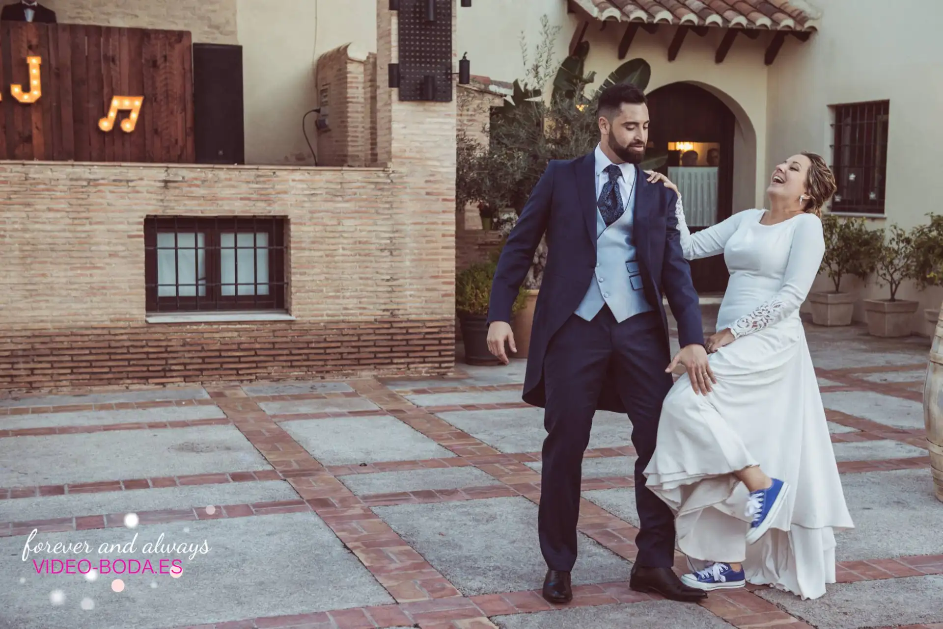 Para vestidos de novia el de Laura de la firma Josefina Huerta novias, desde el principio quería algo sencillo, elegante y con mangas largas, su madre, su hermana , su prima y su tía lloraban de alegria cuando se lo vieron puesto el definitivo, llevaba más de 20 vestidos de novia probados de diferentes sitios, y me pregunto yo no llorarían como cuando yo voy al Corte Ingles con mi mujer y me dice hemos acabado, también es alegría pero de la buena. Al igual que entre tanto vestidos de novia tenía claro el de Josefina Huerta, Laura sabía que los zapatos serían azules, los Manolo Blahnik fue una sorpresa de la madre y la hermana. Lo más significativo para Laura fue llevar el anillo de su abuela como símbolo de cariño en este día tan especial como es el día de la boda.