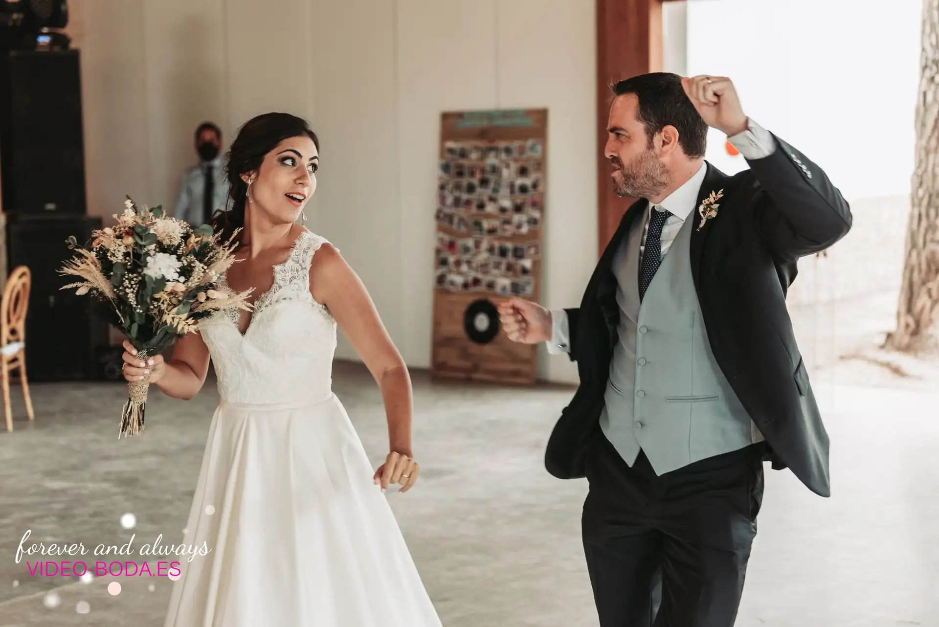 "Confiamos en Video-Boda para las fotografías y vídeos de nuestro enlace y no podemos estar más contentos. Se adaptaron a cambios de fecha, todo el equipo fue cercano y profesional, haciendo que ese día estuviésemos tranquilos y sintiéndonos seguros con ellos. Todo un acierto contratar con ellos el Photocall. Dos días después de la boda, teníamos todas las fotos a nuestro alcance. Sin duda, volveríamos a confiar en ellos, consiguieron captar cada momento especial de nuestro día. Totalmente recomendables."